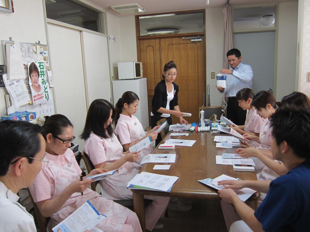今日は院内セミナーを行いました。講師は歯科器械店ヨシダさんの埼玉支社からきてくださった衛生士さんです。当院おすすめの電動(音波)歯ブラシのソニッケア、エアーフロス、水の洗浄機ウォーターピックについて仕組みや細かい使用法のポイント、指導方法などについて、ご丁寧なご講演をいただきました。学んだことを患者様の皆様にもお伝えしていきたいと思います!ソニッケアは特許を取得している高性能の電動歯ブラシです。ご興味ある方は何でもお尋ねください!写真は院内セミナー風景です