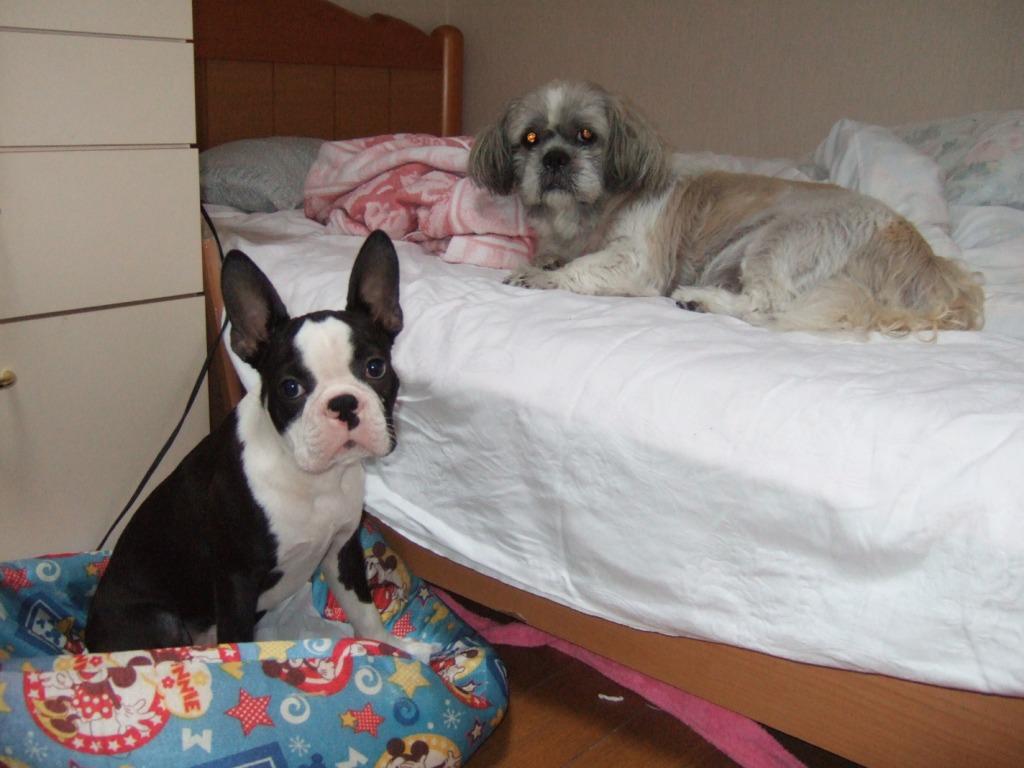 10月に入りました!『1年は早いものですね』…このフレーズ、毎年言っているような気が致しますが 今年も残り3か月を切りました 今回も、おなじみのしぇりーの登場です 7月で13歳になりました。人間でいいますと75歳を超えたくらいです。夏は毎年暑さにばててしまい、元気が一気になくなりますが、近年はいつも秋になると、元気が見事に復活します 散歩のスピードはさすがに落ちて、ゆっくりゆっくりですが朝晩散歩に行き、夜長い時には1時間半もお気に入りの場所まで歩くのです ガンコな性格ですので、「もう帰ろう」と言ってもなかなか従ってはくれないのですが、元気でいてくれることが一番なので、できる限りしぇりーの行きたい気持ちと行きたい方向をを尊重してます 年をとり、夜中にお腹がすくのか、お菓子をねだって吠えてしまうのが今一番の悩みです。獣医さんに相談したところ、軽い睡眠薬を飲ませてみるという方法もあるといわれましたが、まだそれはしたくない…と飼い主としては強い思いがあります。夜にあんなに長く散歩をしても昼間ぐっすりと寝ているせいなのか、疲れ知らずのしぇりーです。私の元気の源で、かけがえのない大事な家族です。これらまも元気で長生きしてほしいと心から願う毎日です。 僕、元気です! 眠くても僕のフランスパン、何としてもはなしません(^_^;