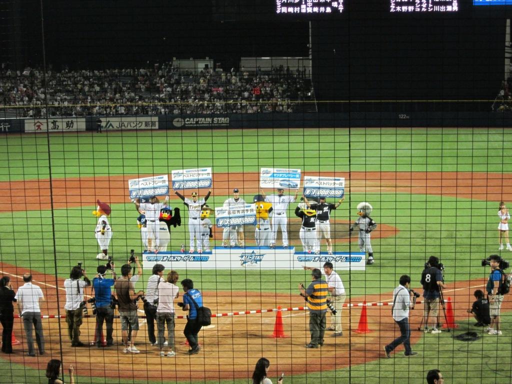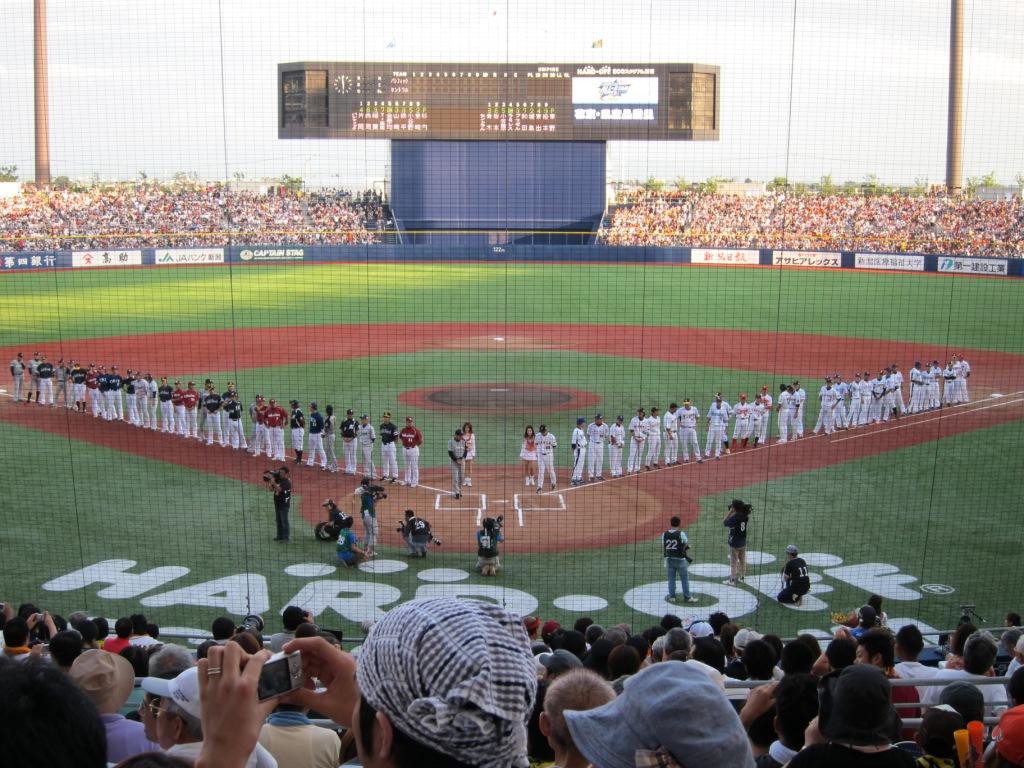 2010年7月24日(土)、新潟で初めてとなるプロ野球オールスターゲーム第2戦が行われました。すごいことですね!!院長も「新潟でオールスターがみられるなんて信じられない。」と言うばかりです。幸運にも患者様からチケットを分けて頂き、生で試合を観戦することができました。「ハードオフエコスタジアム新潟」のおかげですね!球場はほぼ満員で、終始、大興奮の渦に包まれていました。MVPの西武片岡選手をはじめとして、ヤクルト青木選手、阪神久保投手のご活躍、ロッテ里崎選手、楽天山崎選手、阪神ブラゼル選手の豪快なホームランはすごかったです!!球界を代表する選手たちの真っ向勝負は圧巻でした。西武シコースキーのパフォーマンス、巨人ラミレス選手のファンサービス、楽天山崎選手の模範となるような誰より先に守備につく早さなども素晴らしいものがあり感心していました。選手はみんな大きくて、体格が良くて、速くていいボールをビュンビュン投げ込んで、打って守って走って…と!野球は面白いですね。序盤はパシフィックリーグの流れで、中盤にセントラルが追い上げて、終盤に追いついて、結果は5-5の引き分けでしたが、見ごたえある良い試合で、地元新潟で生でオールスターゲームを観ることが来て本当に感動的な1日となりました。選手の皆さま、お疲れ様でした。ありがとうございました